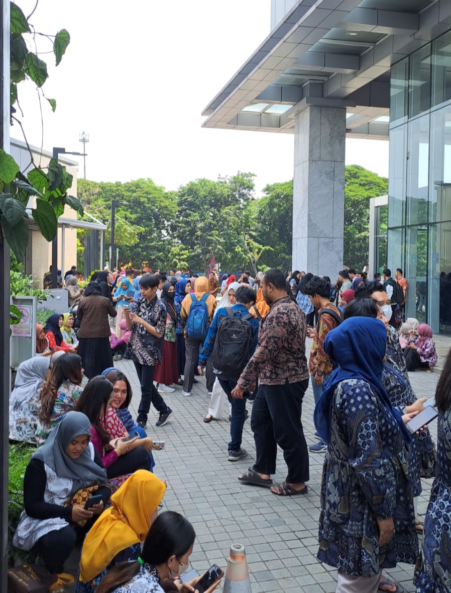 Tak pelak, ratusan orang berhamburan dari dalam gedung menjulang tinggi ke langit milik PT Pelabuhan Indonesia ‘ Pelindo Place Office Tower’ alami kepanik merangsak keluar setelah juga diinfokan untuk meninggalkan bangunan prestisius di kawasan pelabuhan Tanjung Perak itu.