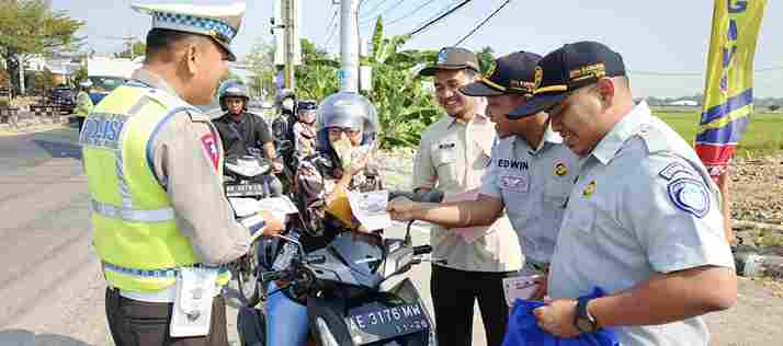 titikomapost.com, NGAWI – Tingkat kecelakaan lalu lintas yang meningkat menjadi perhatian bagi Jasa Raharja. Dalam upaya keselamatan trasnportasi, banyak inisiatif strategis Jasa Raharja Ngawi untuk meningkatkan kesadaran masyarakat akan pentingnya patuh terhadap aturan lalu lintas. Salah satunya dengan melaksanakan kegiatan aksi simpatik. Aksi simpatik ini sebagai sarana sosialisasi dengan memberikan himbuan keselamatan dan souvenir kepada pengendara yang taat dan patuh aturan lalu luntas.