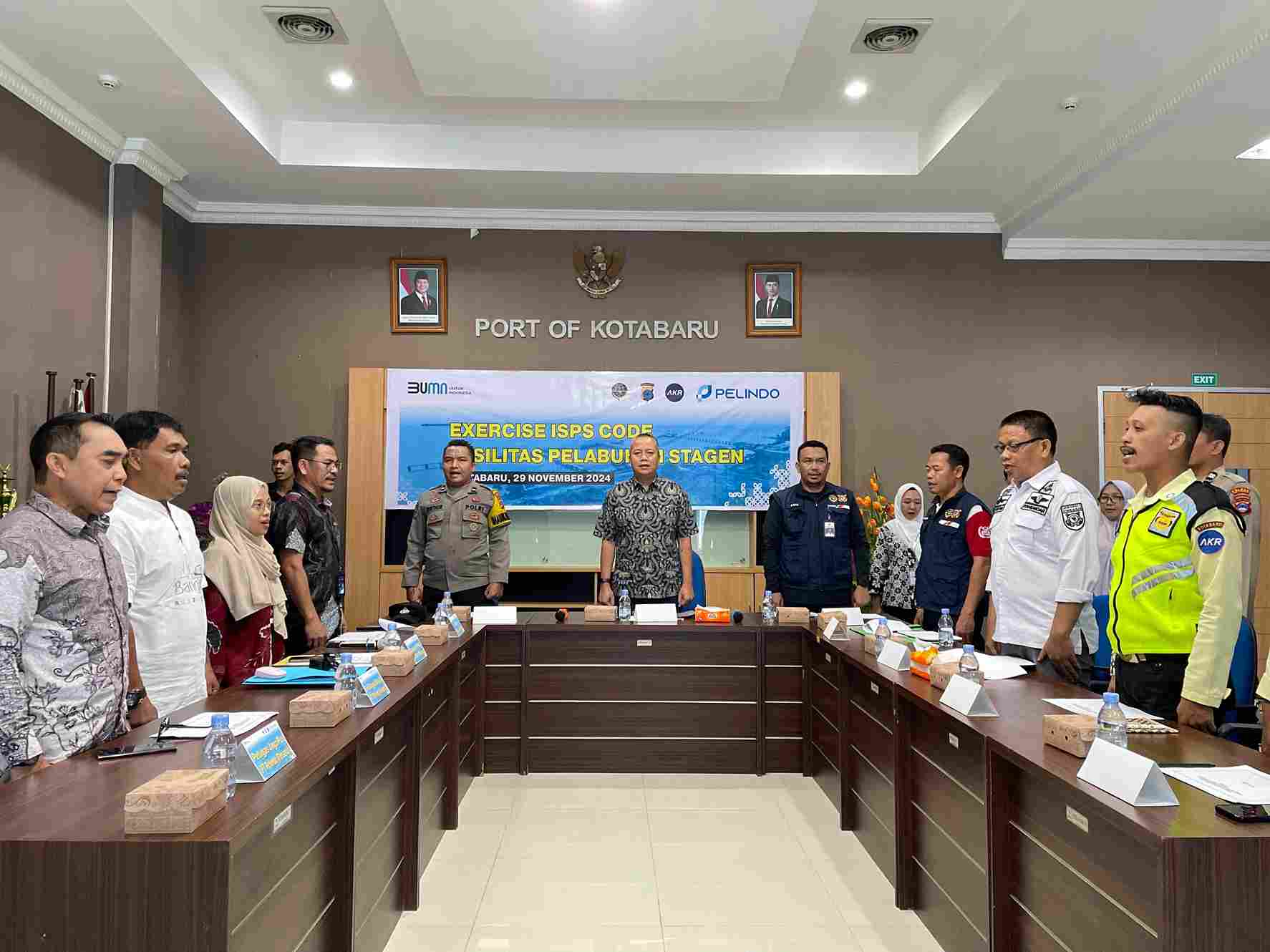 TITIKOMAPOST.COM, KOTABARU – PT. Pelindo Cabang Kotabaru laksanaan exercise ISPS Code keamanan fasilitas pelabuhan stagen tahun 2024 dengan menggunakan metode table top atau semi live yang diselenggarakan di ruang serbaguna PT Pelindo Kotabaru, Jumat (29/11/24).