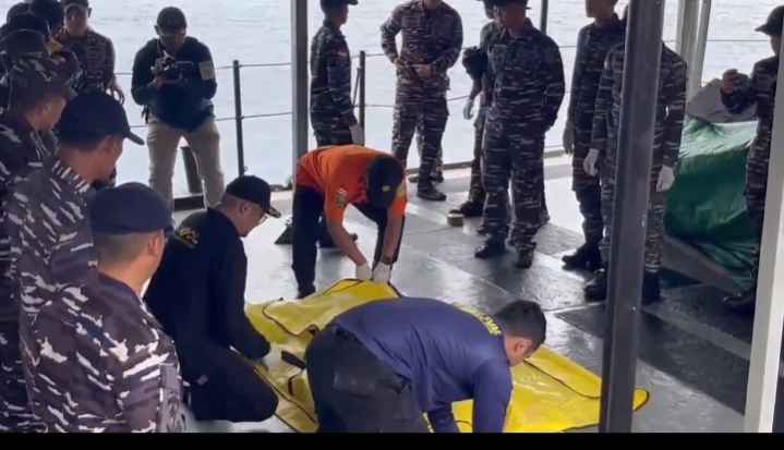 Penenuan jenazah laki laki korban tenggelamnya KMP Tunu Pratama Jaya hari ke lima dievakuai KRI Tongkol 517.