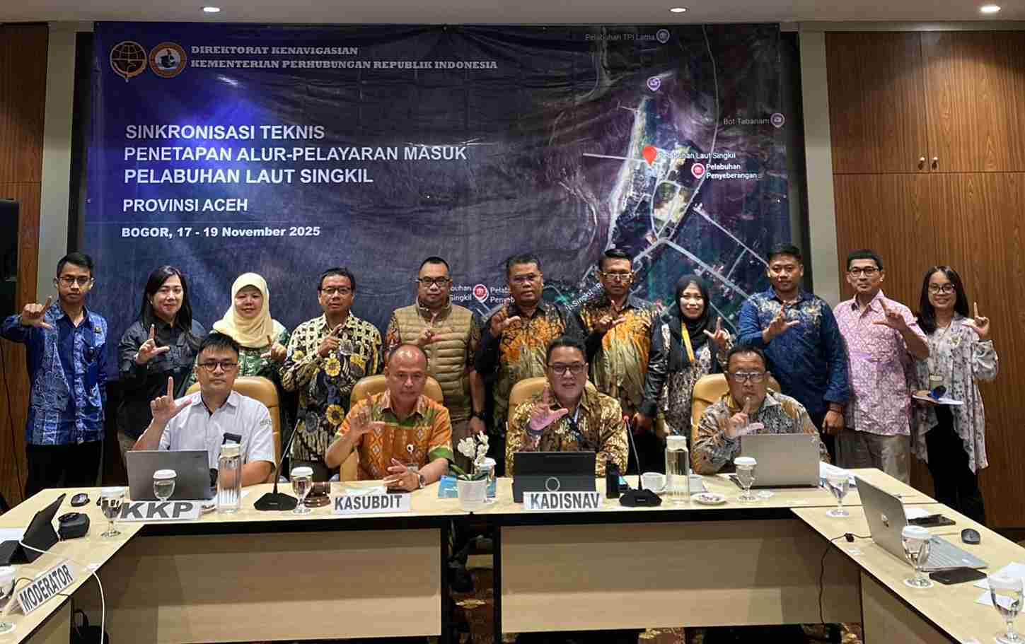 Kegiatan Singkronisasi diawali sambutan, arahan dan pembukaan Sinkronisasi Teknis Penetapan Alur Pelayaran masuk Pelabuhan Singkil Provinsi Aceh yang dilakukan oleh Direktur Kenavigasian, Selasa (17/11/2025).
