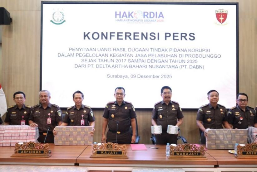 TITIKOMAPOST.COM, SURABAYA – Kejaksaan Tinggi Jawa Timur melakukan penyitaan uang senilai Rp47.268.120.399 dan USD 421.046 dari PT Delta Artha Bahari Nusantara (PT DABN) dalam kasus dugaan tindak pidana korupsi pengelolaan kegiatan jasa kepelabuhanan di Pelabuhan Probolinggo sejak 2017 sampai 2025, Selasa (9/12/2025).